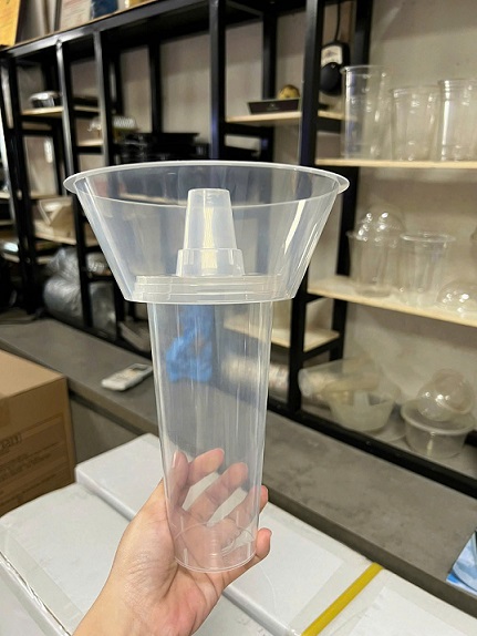 Tô Phễu được làm từ chất liệu nhựa cao cấp (thường là nhựa PET hoặc PP), trong suốt, độ cứng cáp tốt, không mùi và an toàn cho sức khỏe. Chất liệu trong suốt giúp phô diễn được màu sắc hấp dẫn của đồ uống và món ăn bên trong, tạo cảm giác sạch sẽ và chuyên nghiệp cho quán.
