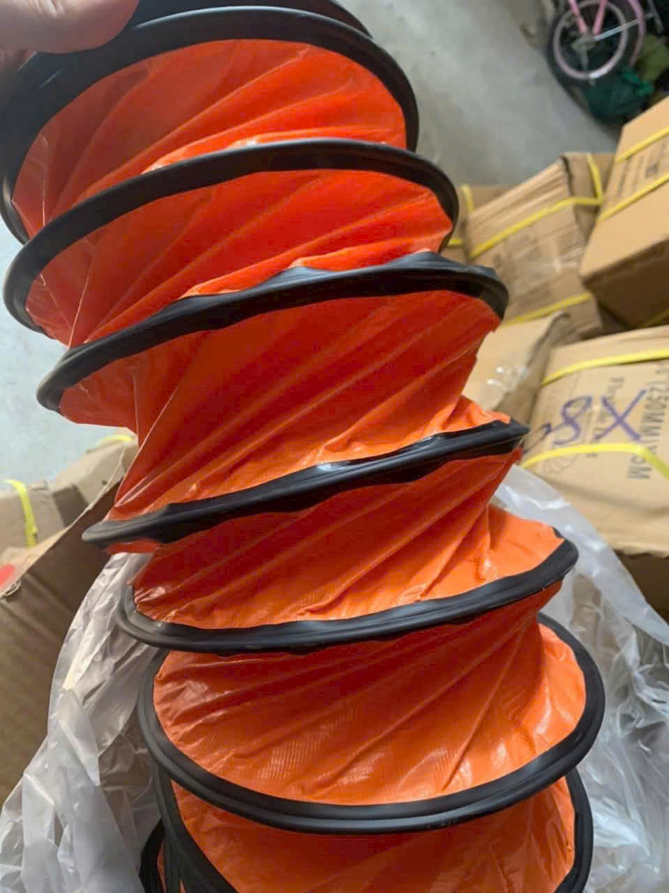 Chất liệu: Vải Simili hoặc PVC cao cấp chịu nhiệt, chống nước, khung thép lò xo giúp ống giữ form tròn nhưng vẫn uốn cong linh hoạt.